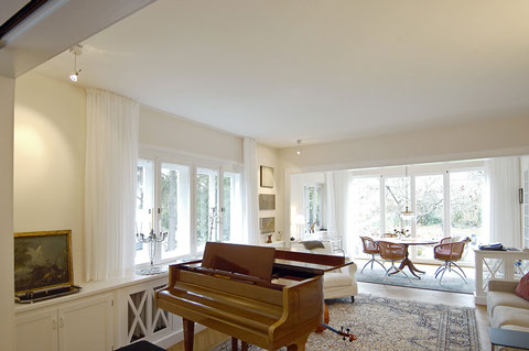 Gestaltungsziel war es, den zum Teil dunkel und schwer wirkenden Räumen Licht und Leichtigkeit zu verleihen, ohne kühl zu wirken und somit dem Stil der Villa gerecht zu werden.